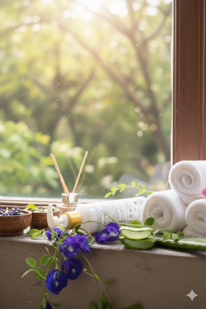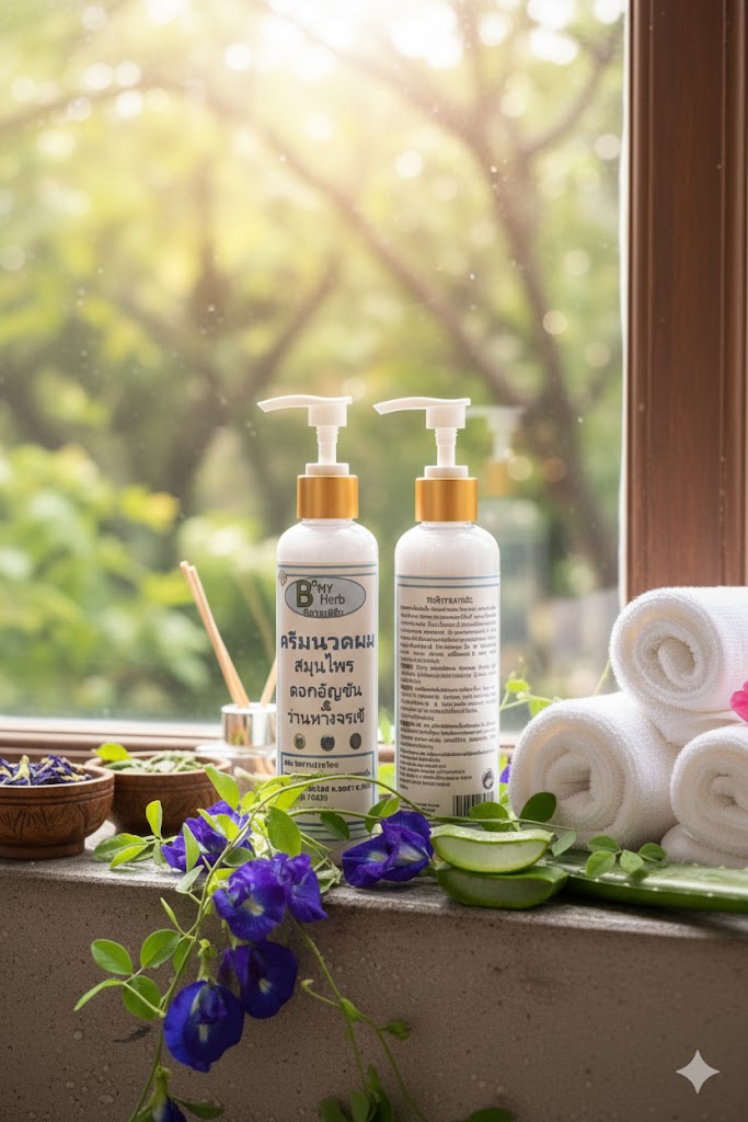 🌿💧 “ผมนุ่มชุ่มชื้น เงางาม ด้วยพลังว่านหางจระเข้ & อัญชัน 💧✨” สื่อถึงการบำรุงเส้นผมด้วยสารสกัดธรรมชาติที่ช่วยเติมความชุ่มชื้น ฟื้นฟูผมแห้งเสีย และเสริมความแข็งแรงให้รากผม ทำให้ผมนุ่มลื่น เงางาม ดูมีชีวิตชีวา พร้อมกลิ่นหอมอ่อนโยน เหมาะสำหรับการดูแลเส้นผมในทุกวัน 🌸💆♀️✨