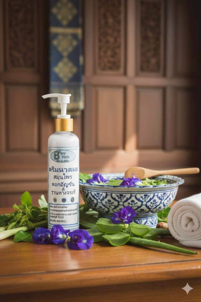 ครีมนวดผมสมุนไพรดอกอัญชัน&ว่านหางจระเข้