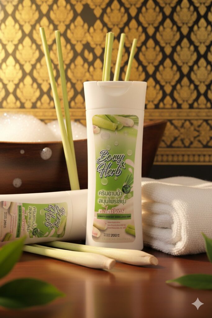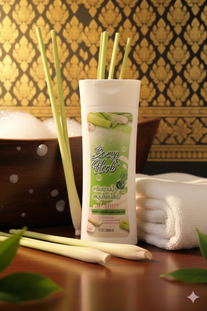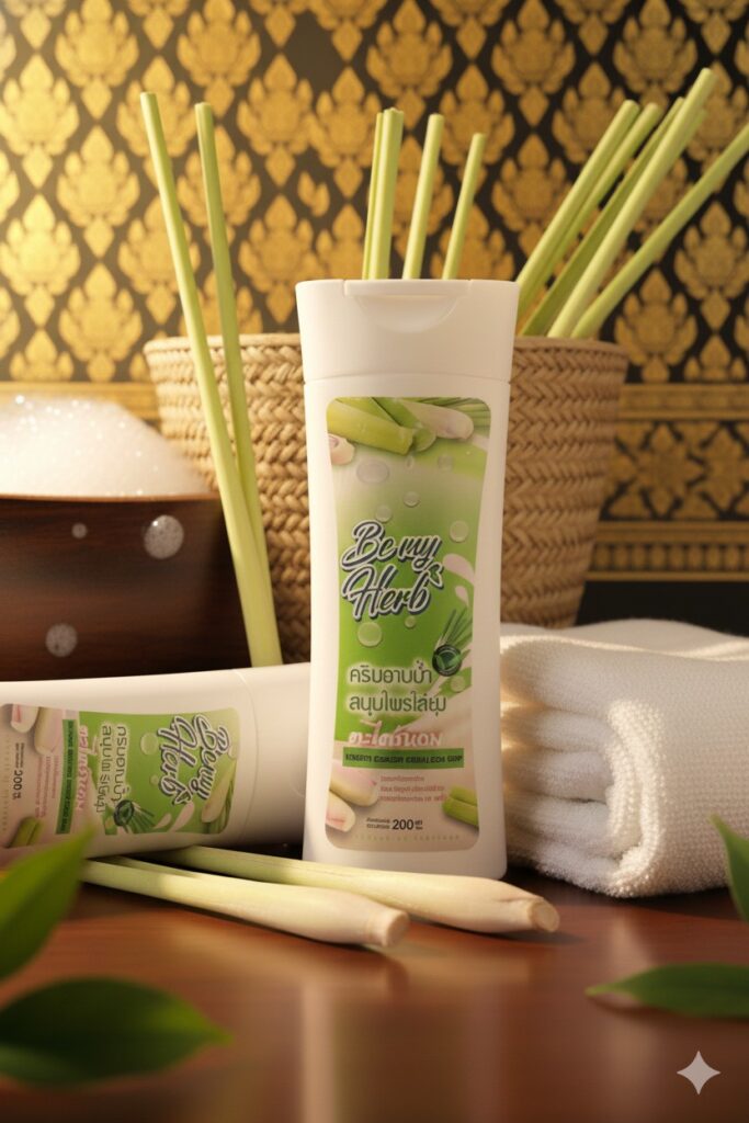 ครีมอาบน้ำที่มีส่วนผสมจากตะไคร้สมุนไพร ช่วยทำความสะอาดผิว พร้อมกลิ่นหอมจากตะไคร้ที่ช่วยไล่ยุงและแมลงบางชนิดตามธรรมชาติ