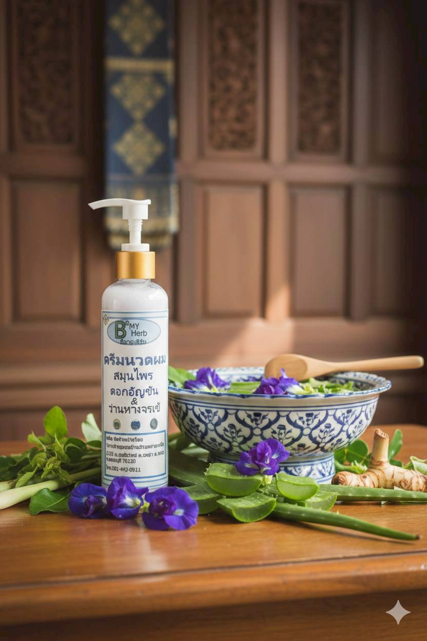 “ครีมนวดผมดอกอัญชัน & ว่านหางจระเข้ เพื่อผมนุ่มลื่น ชุ่มชื้น”