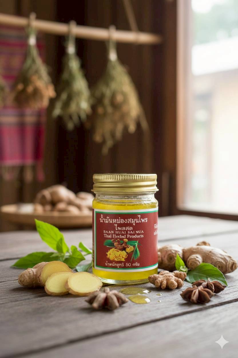 ผลิตภัณฑ์สมุนไพรจากไพลสด ใช้ทาหรือนวดเพื่อช่วยบรรเทาอาการปวดเมื่อยกล้ามเนื้อ ลดความตึงเครียดของร่างกาย และช่วยให้รู้สึกผ่อนคลาย พร้อมกลิ่นหอมจากสมุนไพรธรรมชาติ